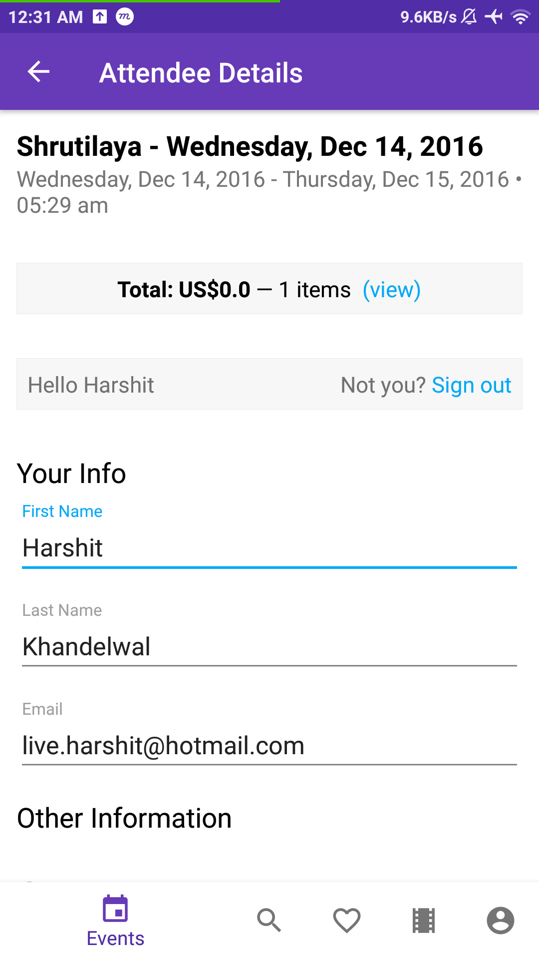 In attendee details fragment -