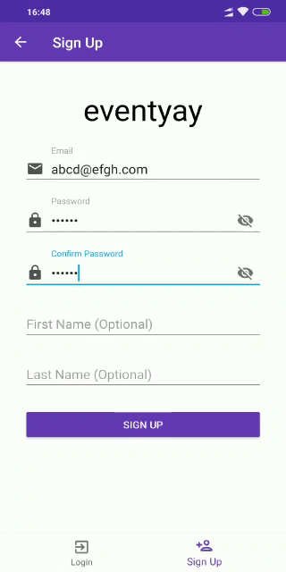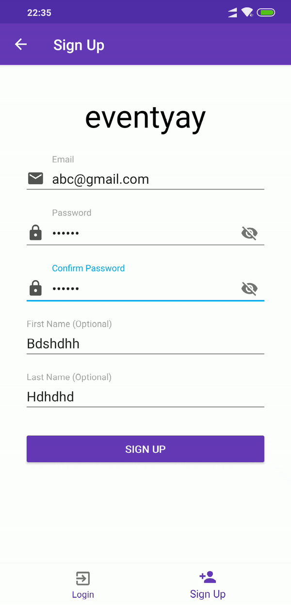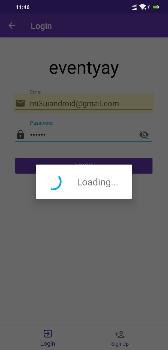 Changes: When sign-up/login buttons are clicked, the button gets replaced with progress bar and the edit text fields get disabled.