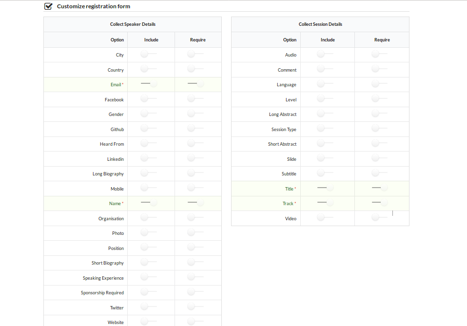Addition of custom form filling for speaker details (Custom Speaker Registration form)