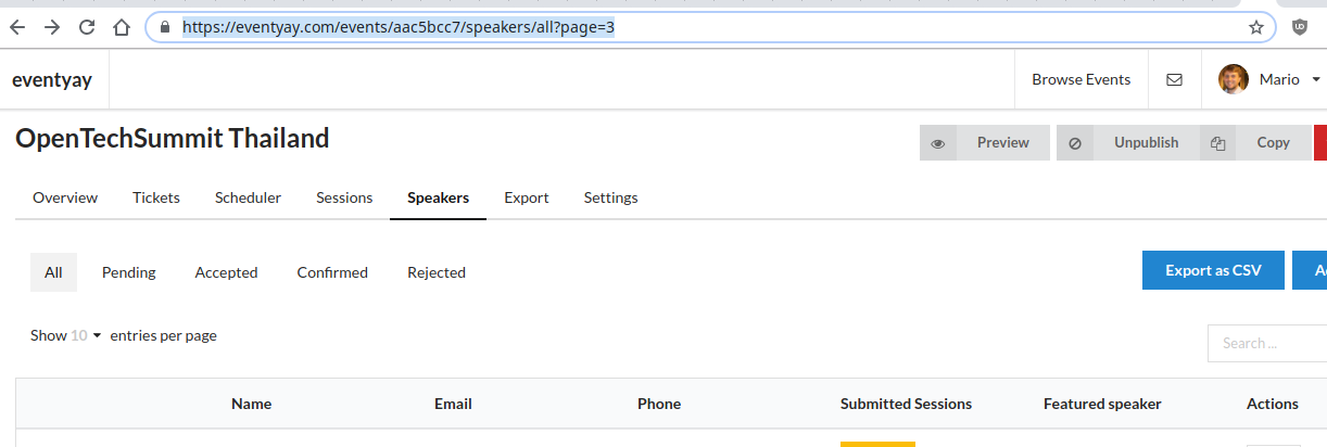 http://localhost/static/media/exports/677/csv//RG84OVJwWE/speakers-817dsomethingseomthing.csv Speaker download page of events directs to localhost.