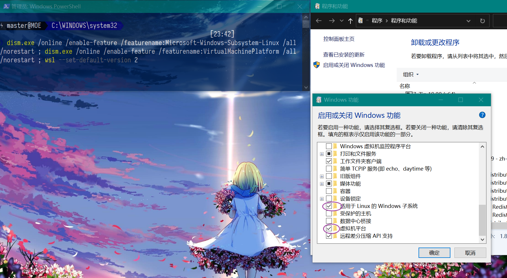 重启系统后再次以管理员身份运行 powershell ,然后输下面 wsl 开头的命令。