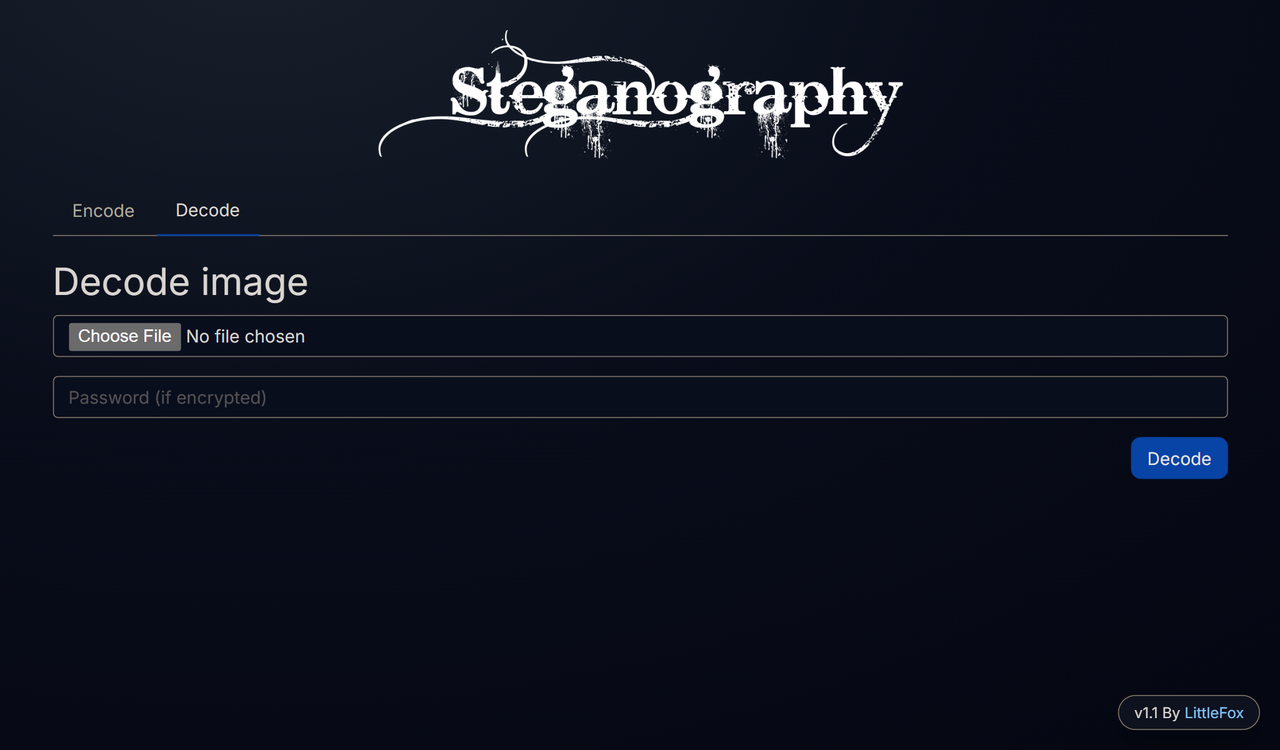 Client-side privacy: All message embedding and extraction run entirely in the browser, so images and secrets never leave the user’s device. User-friendly embedding: Simple visual interface for hiding and recovering text in common image formats with minimal configuration. 🧙♂️