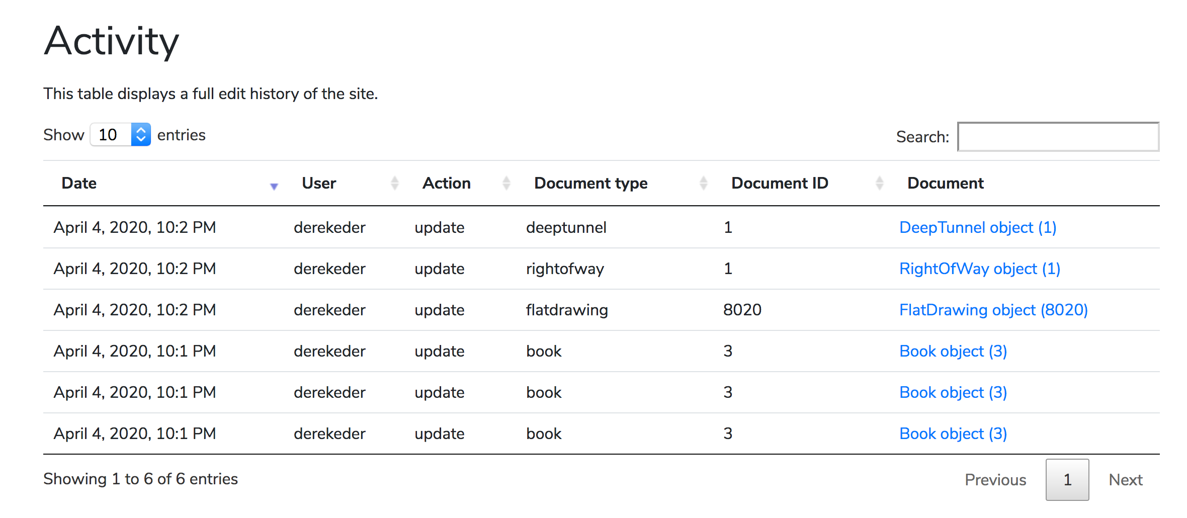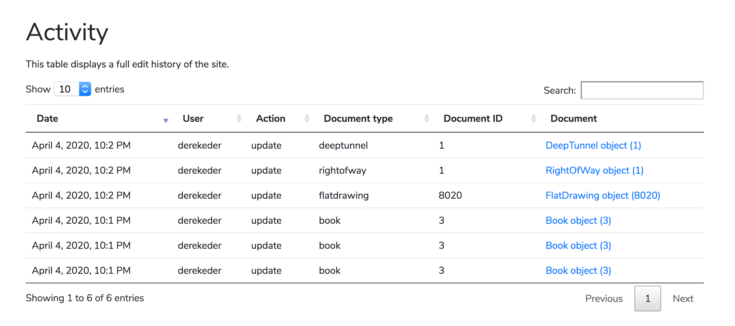 This affects both the main activity page, as well as the activity detail on each document.
