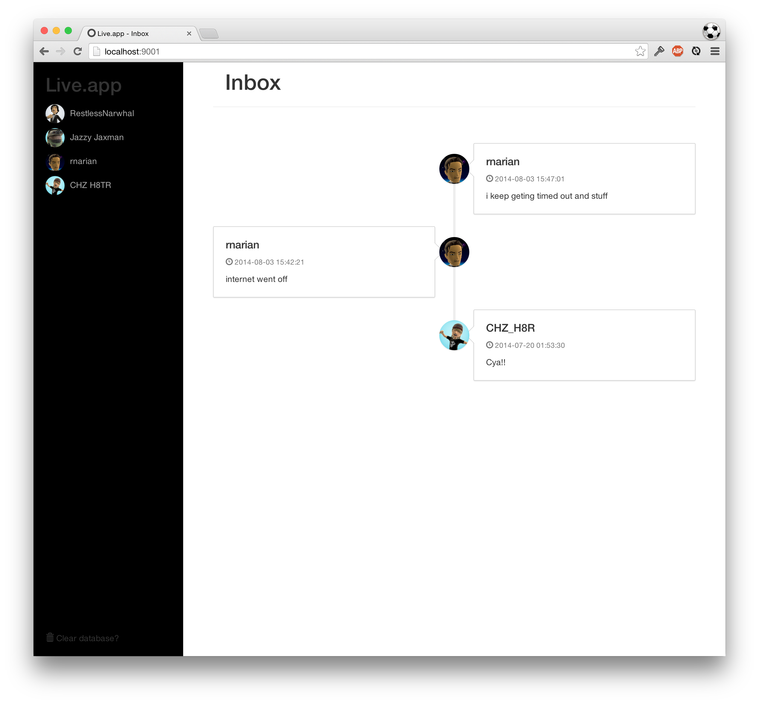 Live.app is a client side JavaScript web app to message your Xbox Live friends. It uses the great RESTful XboxAPI.com to communicate with Xbox Live. PouchDB is used as IndexDB/WebSQL storage to cache and deliver the actual informations more quickly and also to reduce the actual API calls to XboxAPI. You can adjust the caching per endpoint in the settings.json configuration file if needed.