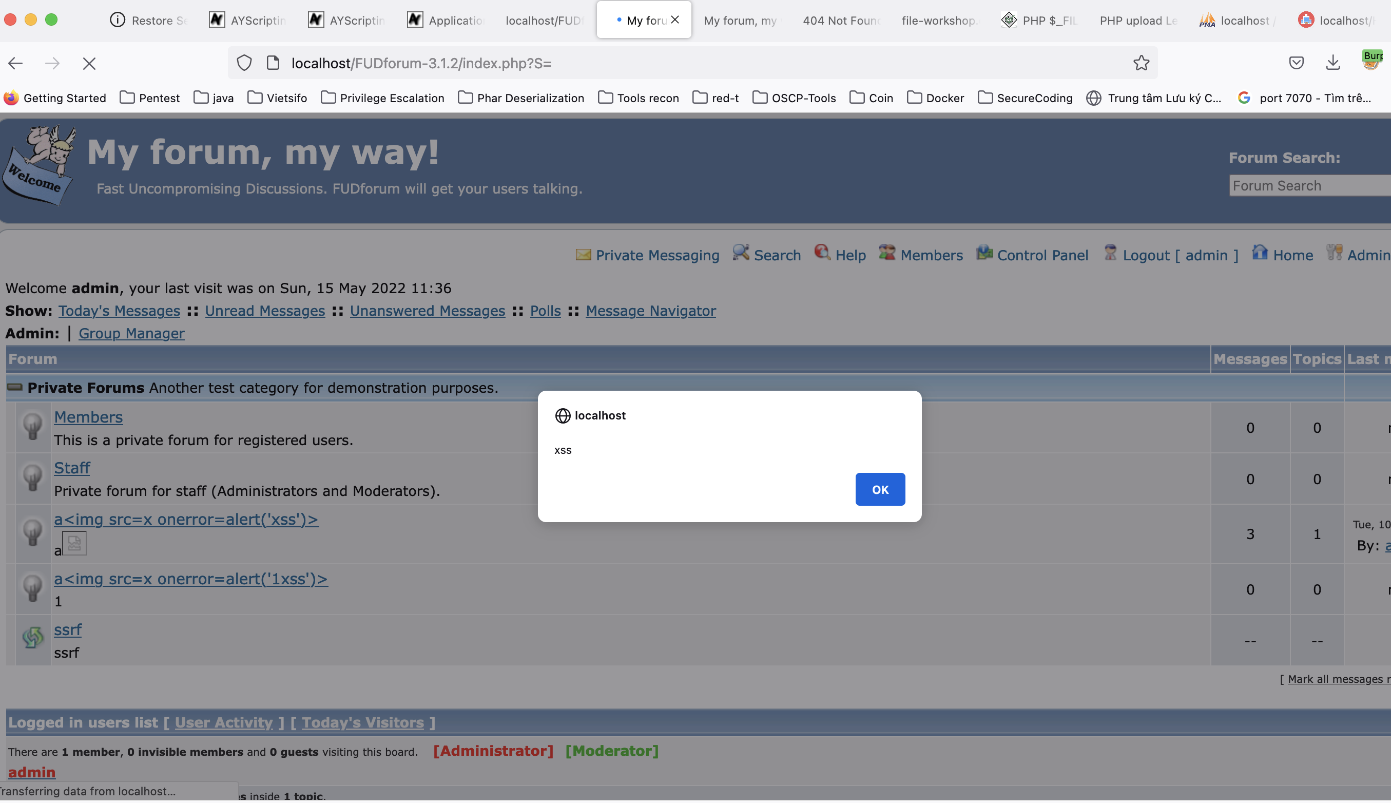 Step 3: Inject XSS payload to Forum Name field and complete Add Forum