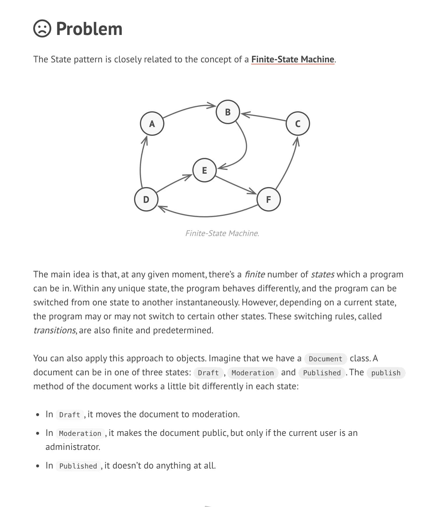 Я именно про раздел Problems этой статьи, там, кажется, про общие проблемы состояния и указано. А дальше уже про паттерн. А других ссылок с явным описанием проблем я не нашел, поэтому или дать эту, или не давать ничего.