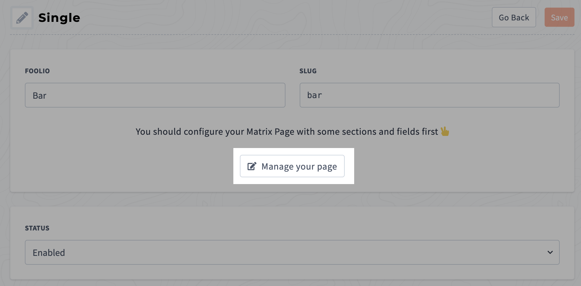 - Create a Matrix (Page or Collection, doesn't matter; DO NOT assign a Fieldset).
