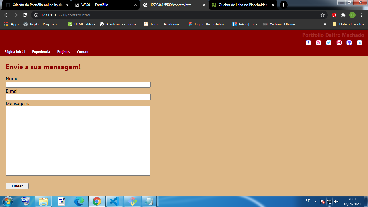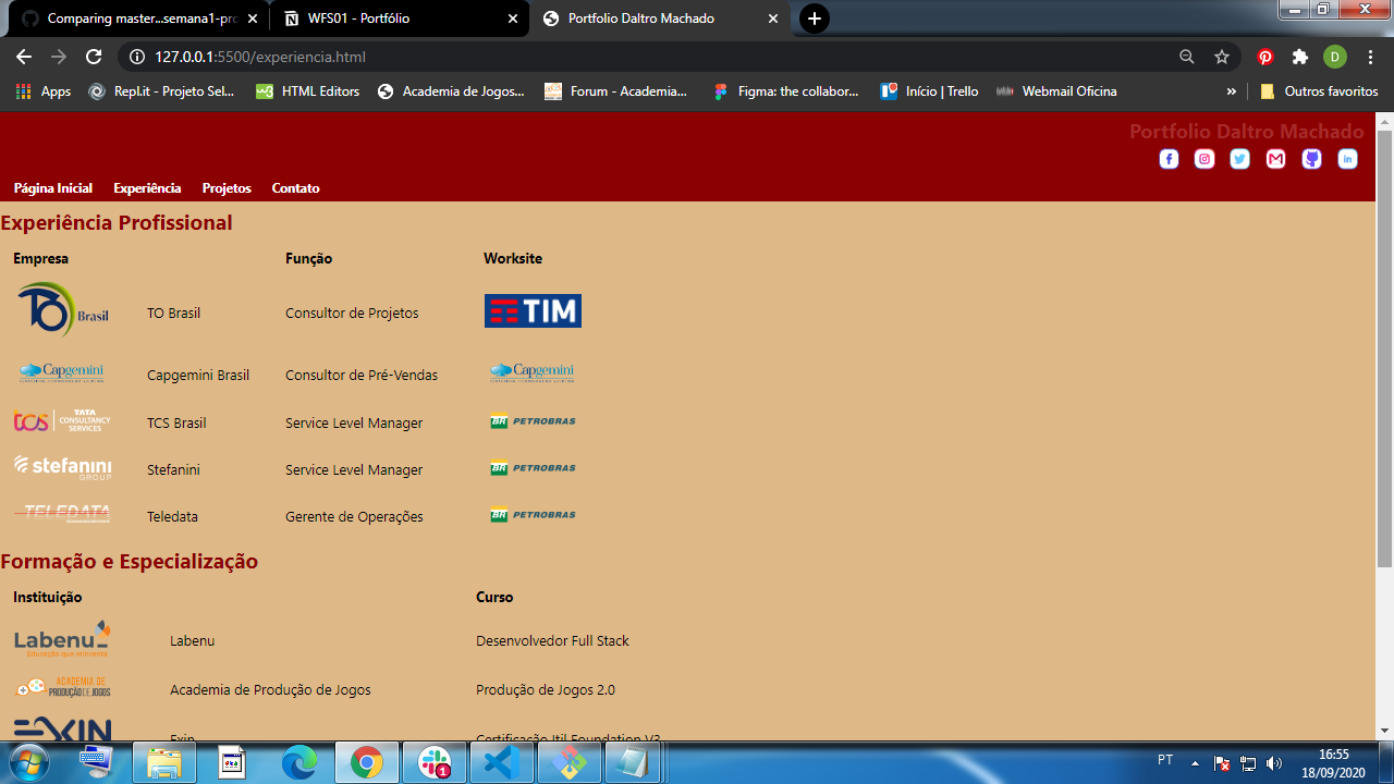 Pagina Inicial e Experiência finalizadas