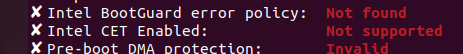 For the fwupd test to pass we need SHSTK and IBT; I don't see the former from your CPU output. For SHSTK we're checking CPUID 0x7 and then |