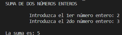 Python-SumaNum Función que suma 2 números enteros. Función Se definió una función que recibe como parámetros a dos números enteros y devuelte la suma de estos: Ejecución Se probó la función con los números 2 y 3 y dando como resultado 5: