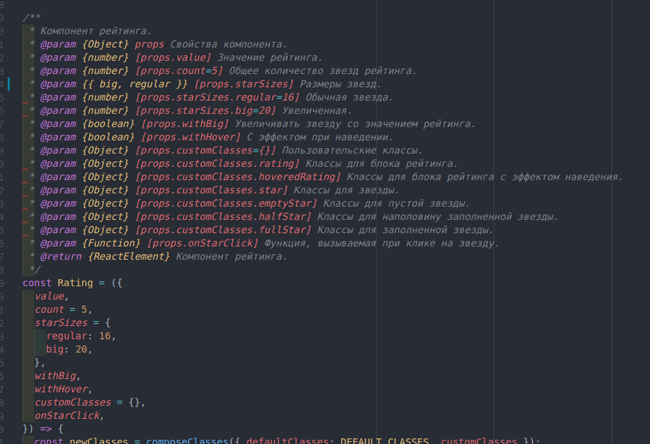 60:0 error @param "props.customClasses.rating" does not exist on props jsdoc/check-param-names