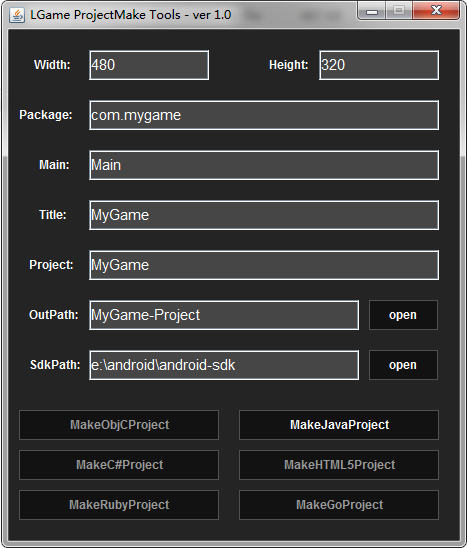 LGame comes with a file called LGameProjectMake.jar which is an executable UI and command line tool. You can simply execute the JAR file which will open the setup UI.