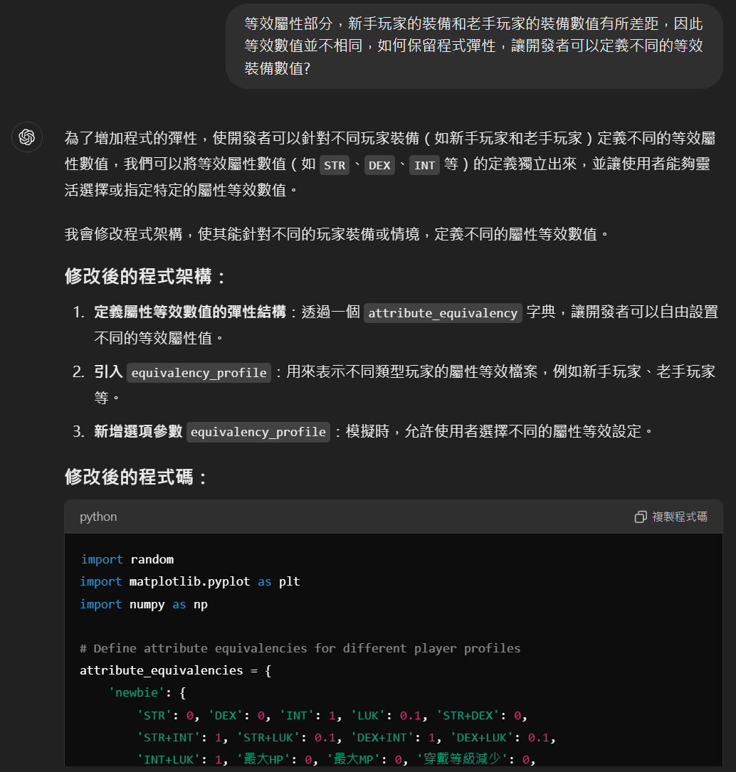 程式內的邏輯架構主要由CahtGPT產生,我只手動修改了數值部分 (各等級T1星火數值、等效主屬性換算)