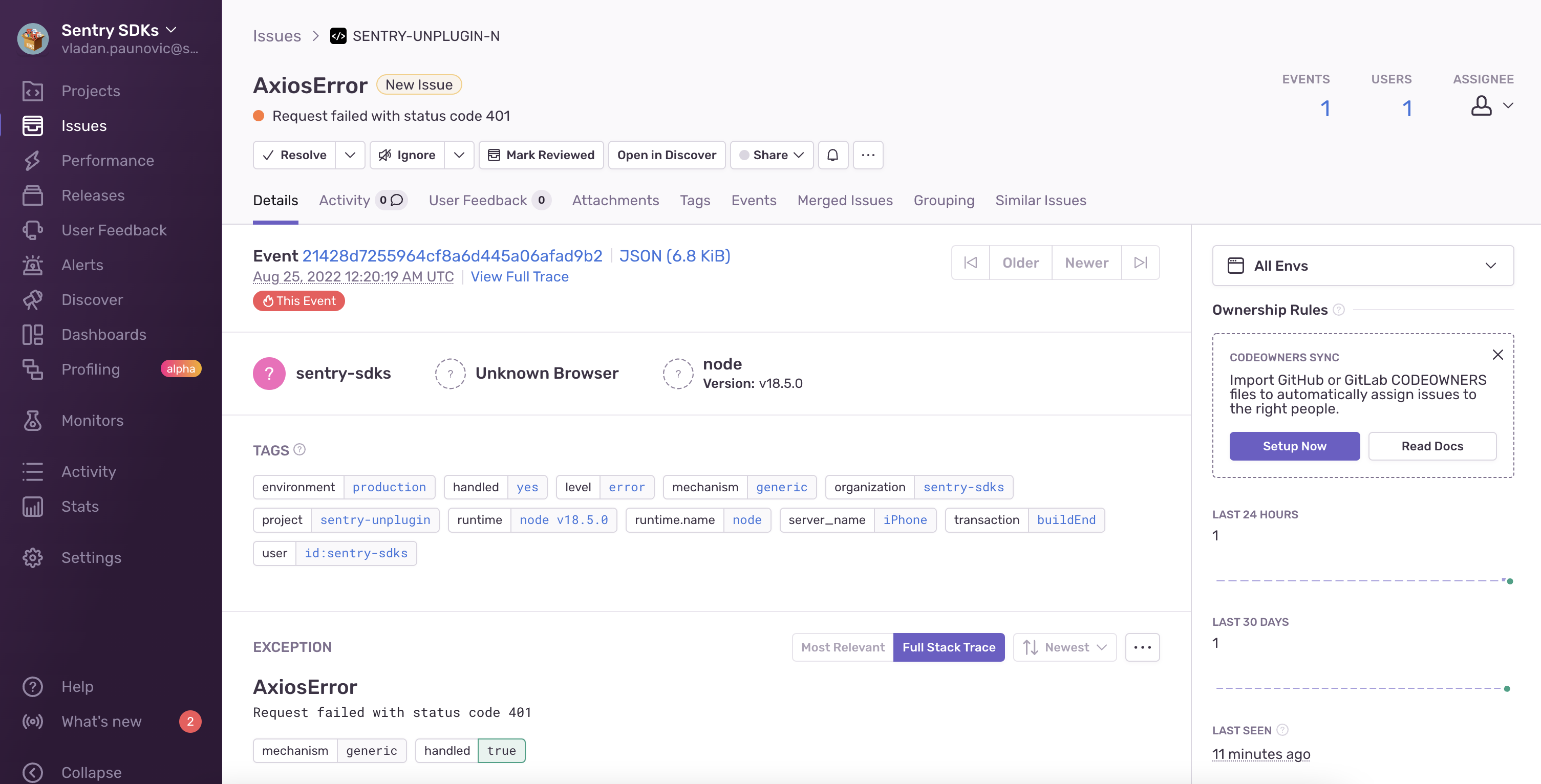 This will allow us to proactively monitor and get alerted about our customers errors.