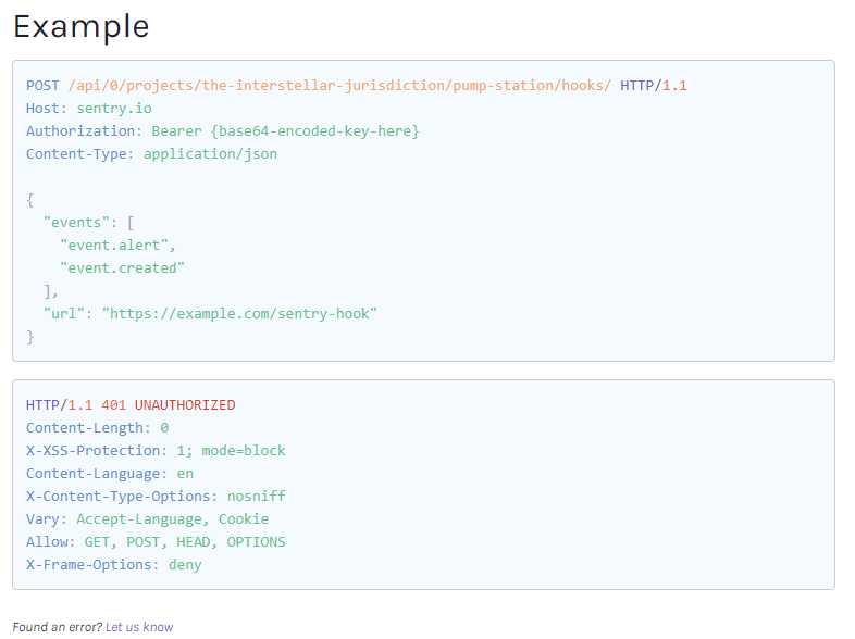But when I do it through the API using POST /api/0/projects/{organization_slug}/{project_slug}/hooks/