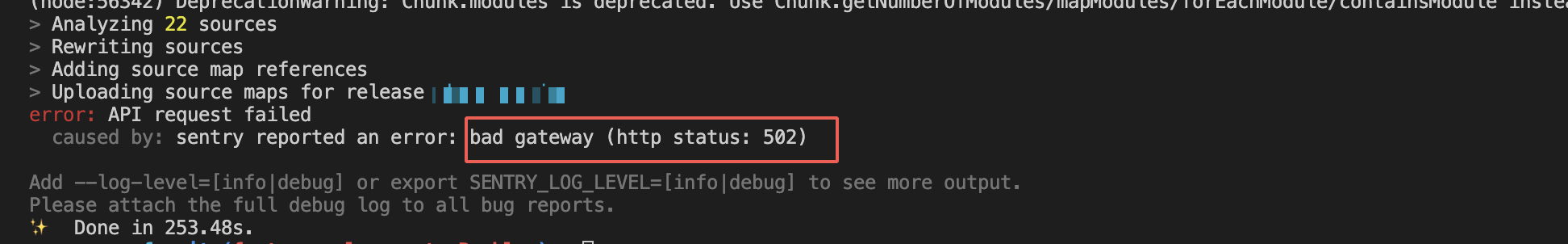 ## Important Details ## Version raven-js: "^3.17.0" @sentry/webpack-plugin: "^1.10.0", ## Description   [What happened] App.js.map upload to Sentry fail!  Large sourcemap leads to 502 ? Upload fail?
