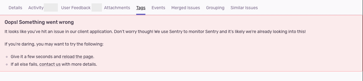 - Open the Issue details page for any issue which has a high number of events