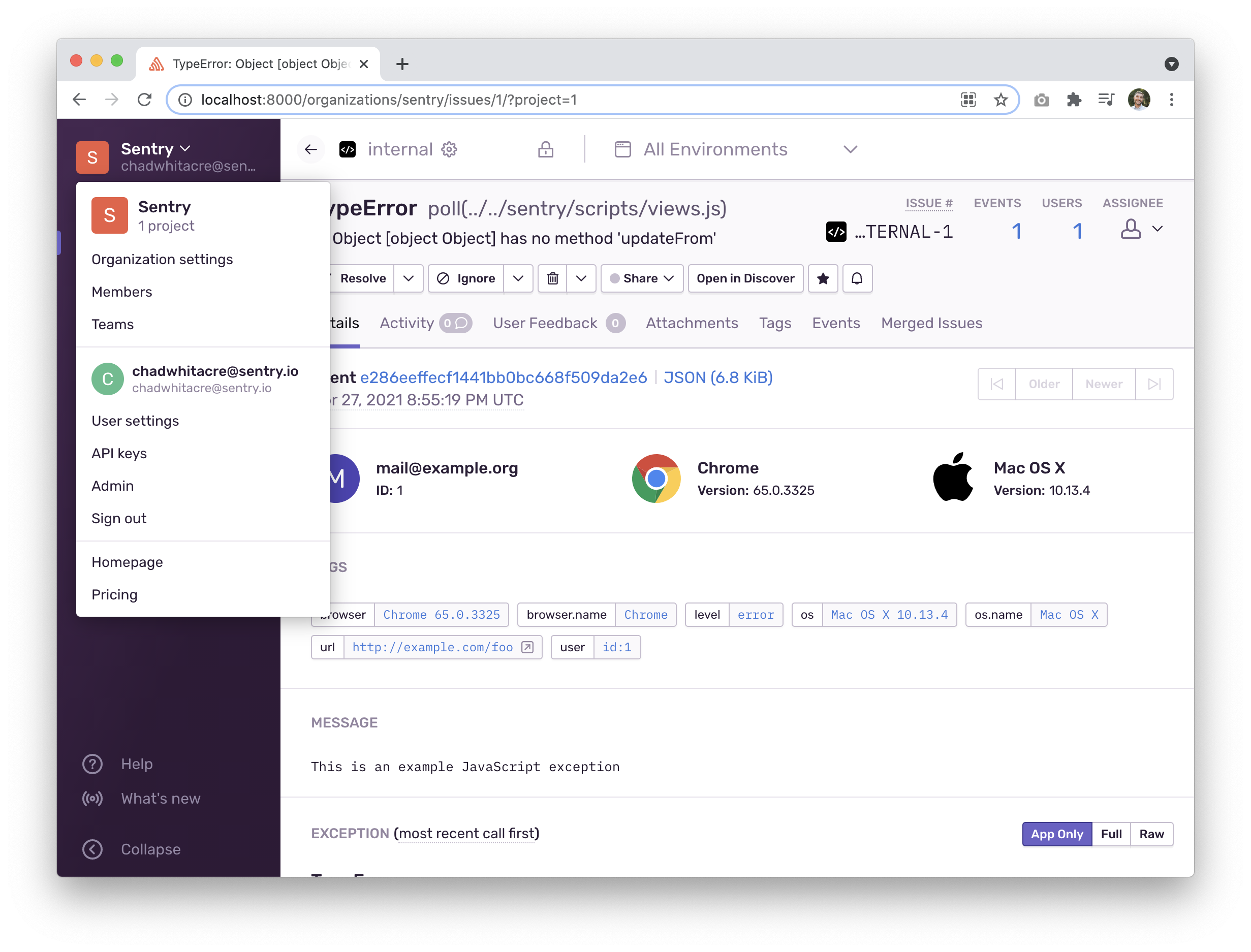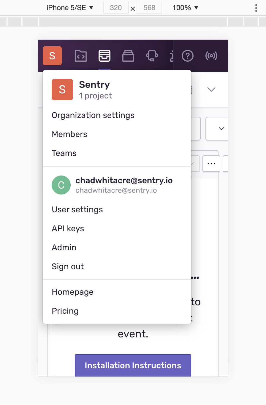 The footer felt way too distant. Lots of scrolling to discover that there are even links down there (does anyone ever click on those? genuinely interested). Also, "Visit Sentry.io" felt weird because the user is already on https://sentry.io/. 🙈