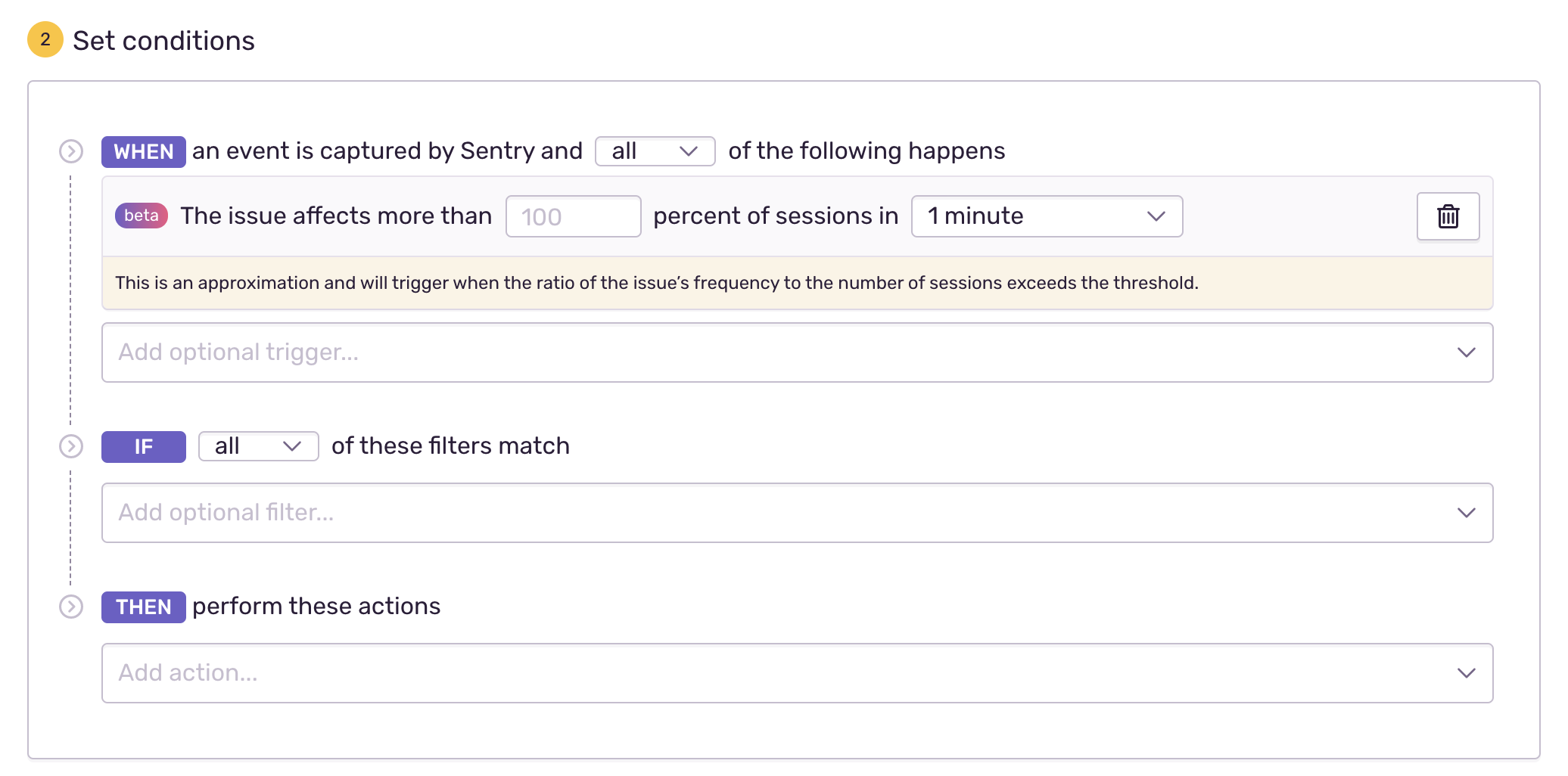we want to track how often users are picking our new alert rule conditions. This will track all 3 dropdowns from the screenshot below.