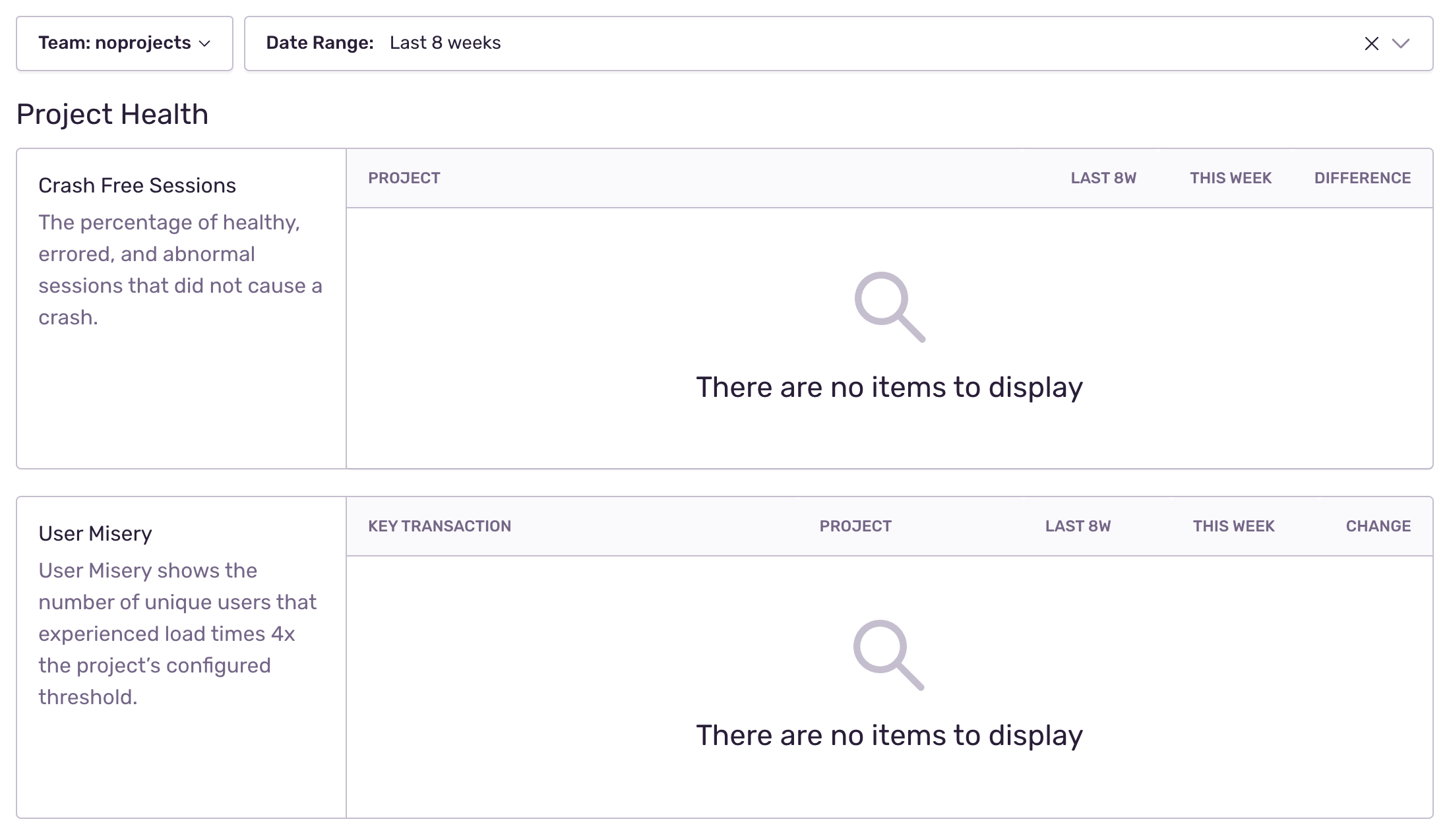 adds no projects message to the existing components
