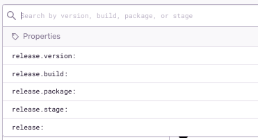 This changes the search bar dropdown supported tags title to "Properties" in the releases list.