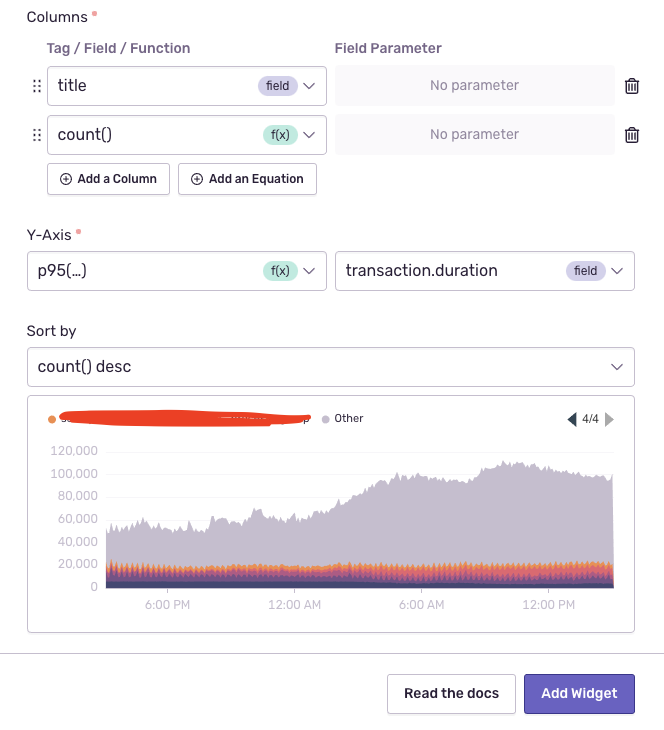 Allow Dashboard Top Events widgets to add aggregate columns so that chart can be sorted by aggregates