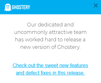 Every time I open my browser The Ghostery popup window comes up, in the way. No matter how many times I, "Check out the sweet new features and defect fixes in this release" it never stops bothering me every time I open the browser!!!