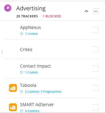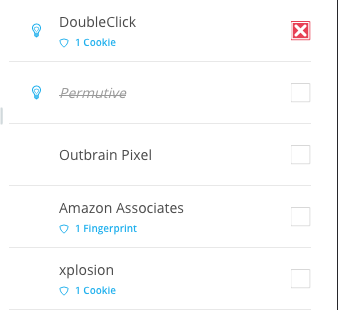 Show additional Cliqz details for each tracker in the detailed view: number of cookies blocked / fingerprints wiped by Cliqz for this tracker, if any.