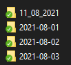 However, the folder name generated by date-iso is (@ 10 am my time) for the previous day, not today. E.g. today is 2021-08-04 but the folder used/generated is 2021-08-03