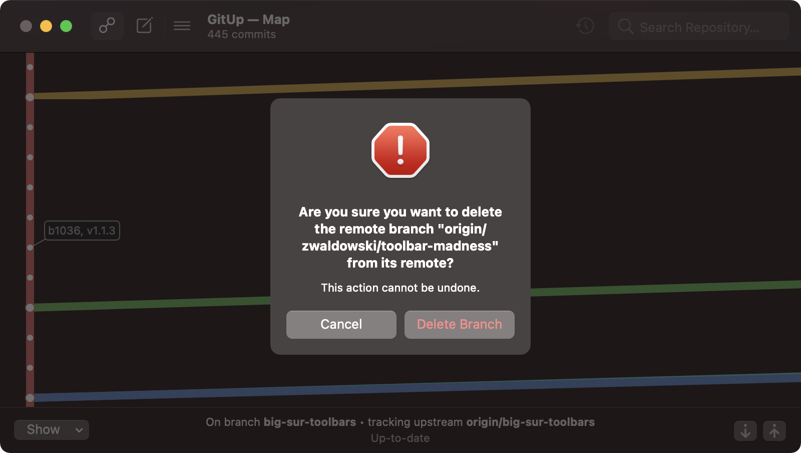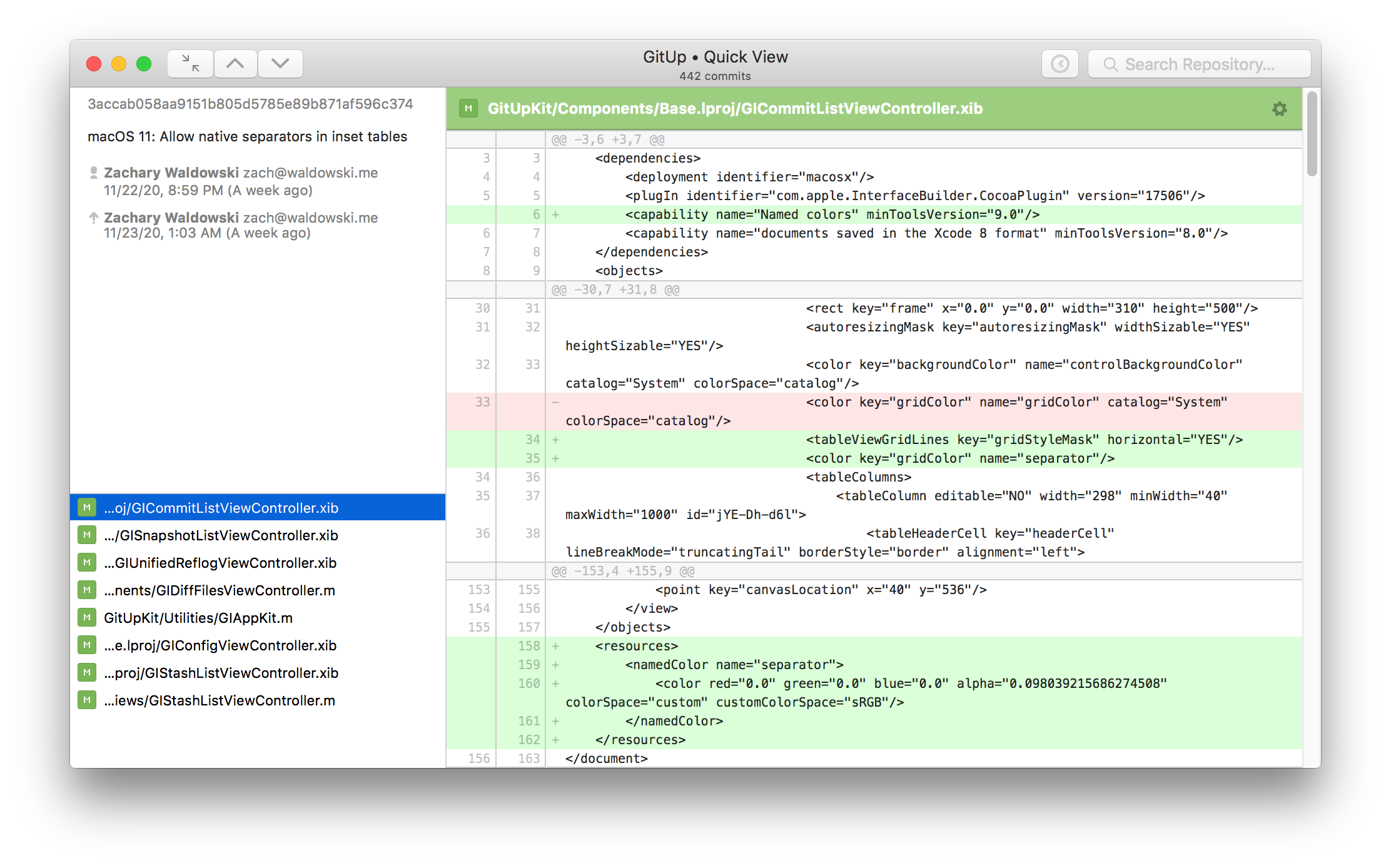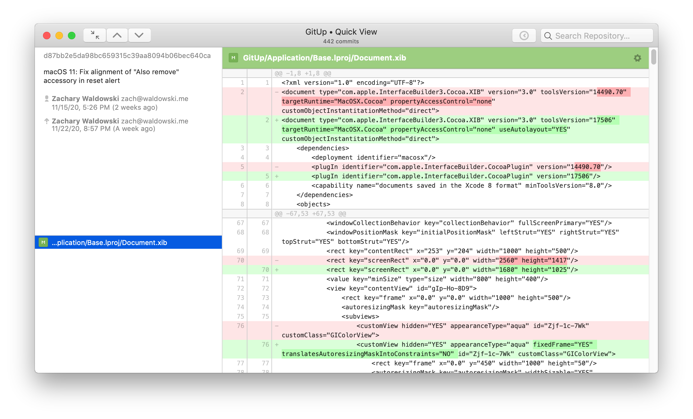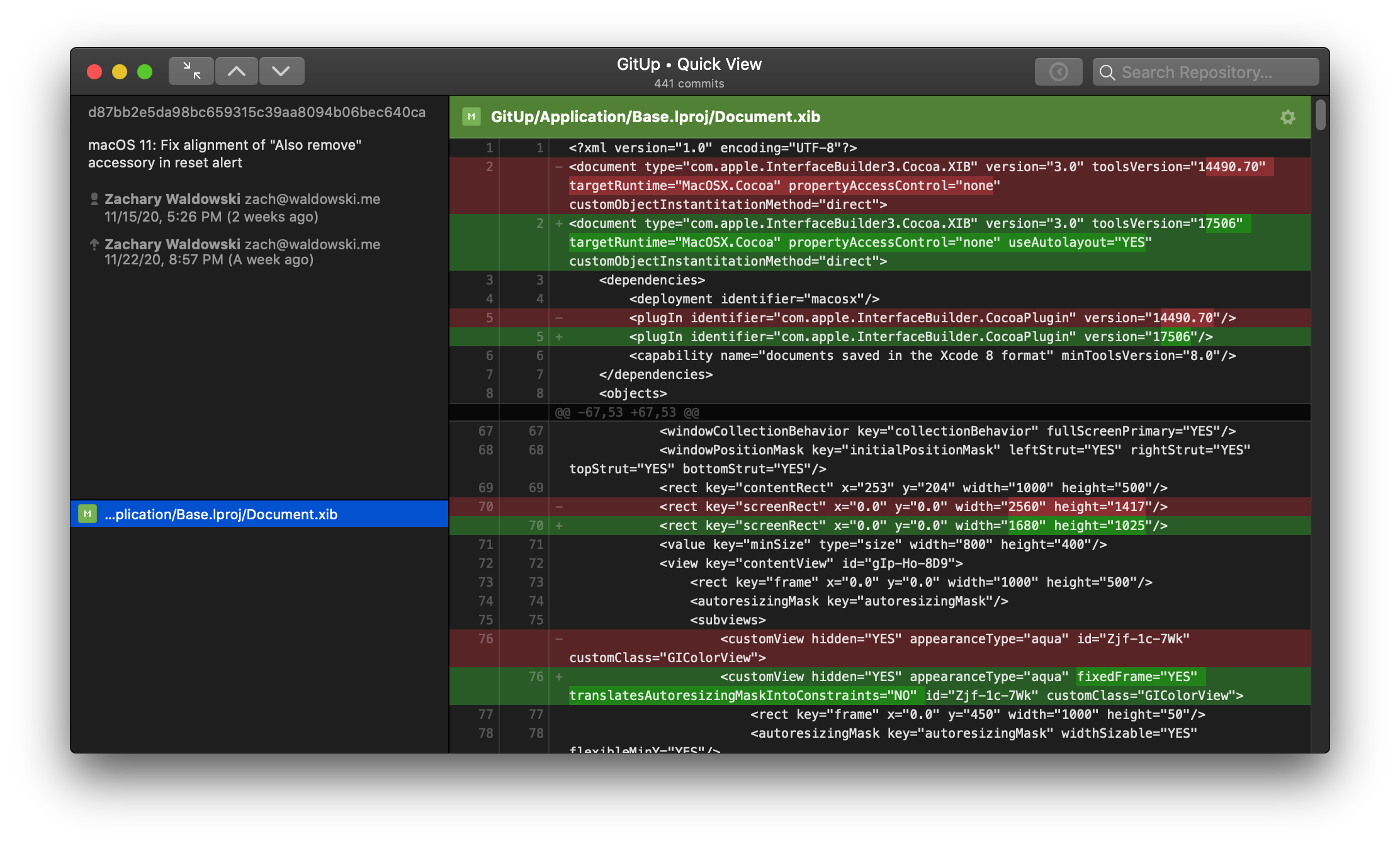 The big change here is reworking the main toolbar to have a fixed layout. The map/commit/stashes control switches to show the up/down/close controls in a Quick View (rather than switching sides of the window), and the snapshots button and search bar disable instead of being hidden. For code complexity’s sake, this applies on 10.15 and below as well. The two-line window title remains as-is on 10.15 and below. This is definitely open to discussion, but it’s been working well for me in a week of daily use.