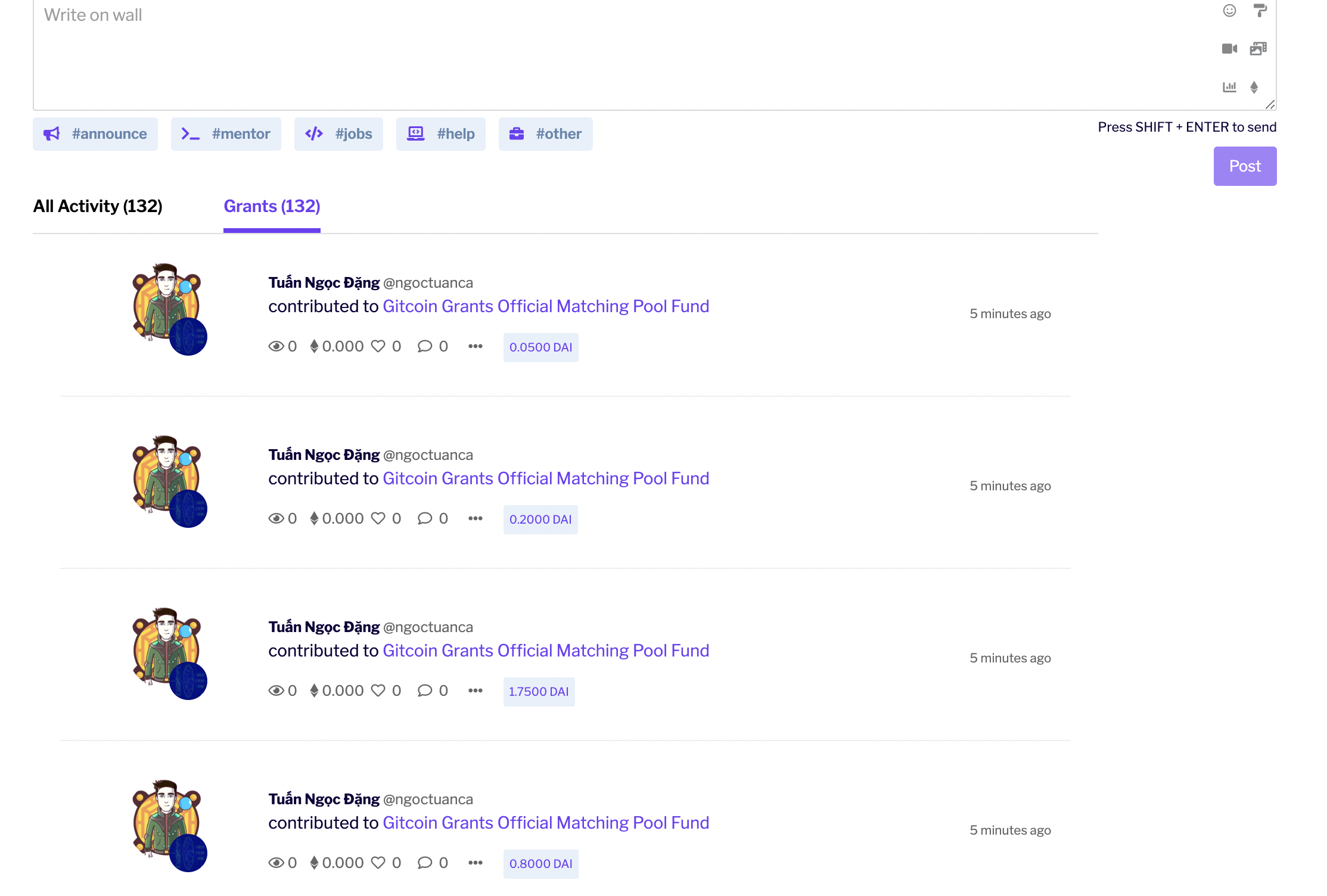 Users transactions show the correct name that was contributed too rather then gitcoin official matching pool fund.
