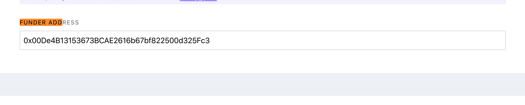 - scroll down to funder address