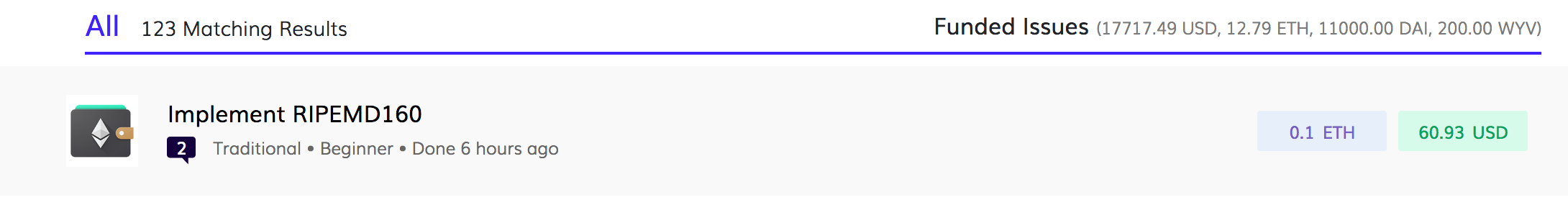 Thanks for the feedback @owocki, I'm very happy to be working on this as well. I'll be addressing the issues you pointed out. Definitely plenty left to fix and responsive design should have all the love it deserves. In terms of data being spitted out, I assume the goal is to have all the data passed down on GET and make updates with POSTs accordingly (when filtering)? Just considering this, not sure if what I'm about to suggest is what we want, but - would it be acceptable to render the page with placeholders for data (basically empty divs) and use JS to render the data inside the elements after POST requests? Bear in mind, I am a bit biased towards doing things in JS even when it's not the best solution. |