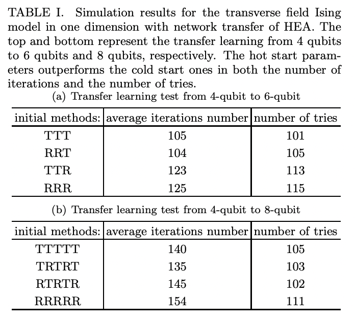 # 論文概要 事前に解決された課題の知識を別の関連する課題でさらに利用することで学習効率を向上させる転移学習の基本的な考え方に基づいた、VQAのBarren Plateau(BP)を緩和するパラメータ初期化手法。ランダムな初期化よりも優れておりBP緩和を示した。 # 論文を理解する上で重要な図など <img width="695" alt="Screen Shot 2021-12-22 at 9 37 21 AM" src="https://user-images.githubusercontent.com/32871721/147135528-5259622e-57f6-4f53-9f41-925486f024d9.png"> <img width="694" alt="Screen Shot 2021-12-22 at 9 37 40 AM" src="https://user-images.githubusercontent.com/32871721/147135535-0c783305-a366-416b-a520-cd6013624f86.png"> <img width="348" alt="Screen Shot 2021-12-22 at 9 37 56 AM" src="https://user-images.githubusercontent.com/32871721/147135536-dedba8ee-960e-4ae0-95f3-a3e3df36e2e1.png"> # 論文リンク https://arxiv.org/abs/2112.10952