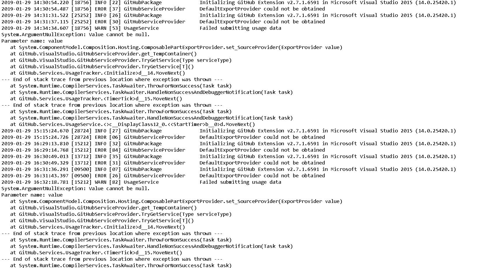 Just got this Error in Visual Studio both my private and public repo doesn't show up. for the public repo it just close after opening it while for the private repo it just sit there but it's empty and If I clicked somewhere in visual studio on my private repo it will display a message "a key has already been added". I have this log under %appdata% local and not roaming cause I cannot see any logs in roaming.