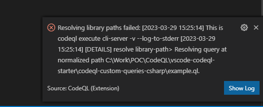 Installed codeql pack download codeql/csharp-all at location where yaml file is present for starter pack
