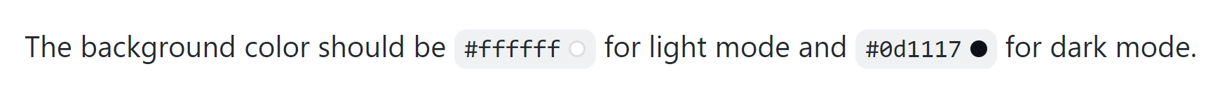 I based my syntax on the World Wide Web Consortium's CSS Color Module Level 3. While those links may be helpful, I decided against linking them because I don't think GitHub Docs needs to explain how web colors work. It could also be further confusing because the GitHub supported color models don't support the three hexadecimal characters format, as listed in W3C. I included a note for the whitespaces, but wasn't sure if I should add one for the HEX requiring six hexadecimal characters. Lines 106 to 110 in 8ab4cf6
