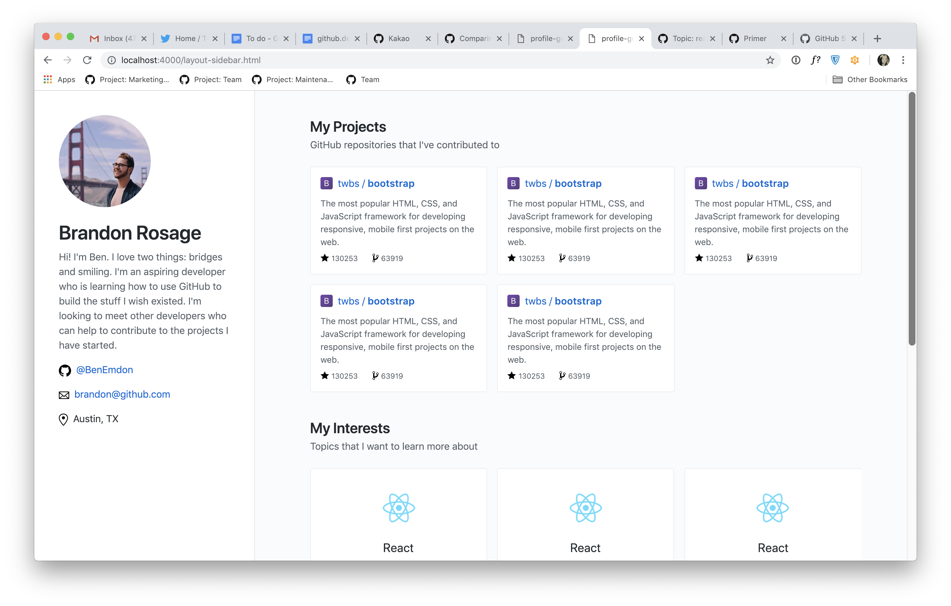 This adds some (static) partials so that I can start to predict what these layouts will look like once we wire them up with real profile data.