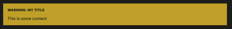 | expect(screen.getByText('WARNING: Warning title')).toBeInTheDocument(); |