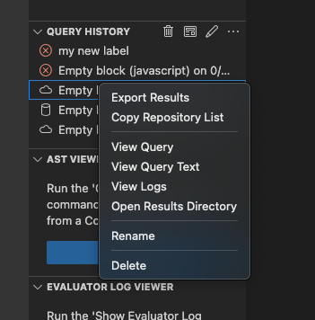 Updates the copy and introduces groups to the context menu for the query history.