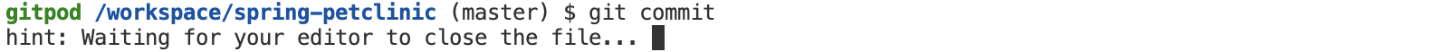 When trying to commit some changes in git pod workspace the terminal shows a message stating