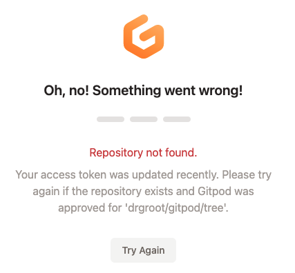 Click request, and it takes be back to https://gitpod.io/#https://<domain>/gitlab/drgroot/-/tree/master