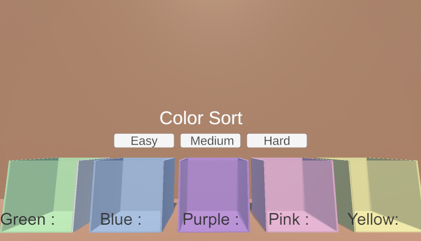 Because it would take me a while to find nice assets for this project, I began by creating a simple prototype that I call "Color Sort." In Color Sort, the player simply has to put the colored balls in the corresponding container, and the count for each container will go up as they do so. The game ends when a ball is sorted into the wrong colored container.