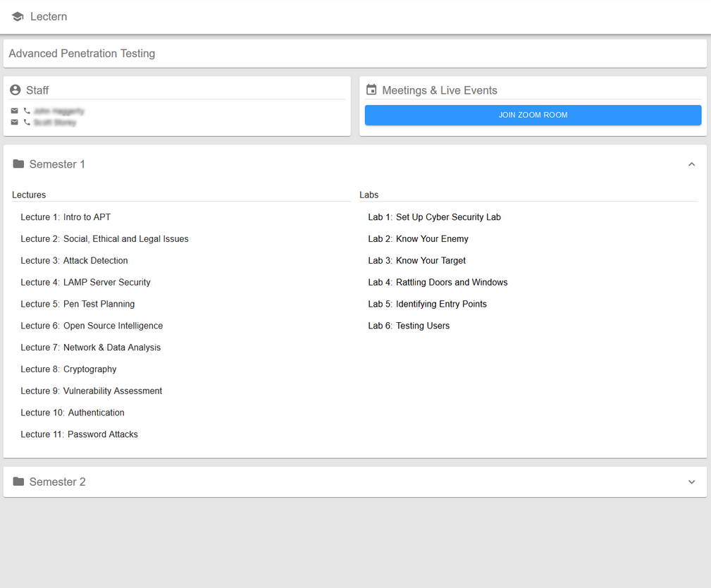 Lectern is a proof of concept educational content distribution platform built-in React and Node JS using DynamoDB and other AWS related technologies as part of an Enterpise Application Management project. In addition to conveying informaion and hosting links, it uses S3 storage to provide virutal hosting of course content and hosts lecture recordings so that they can be accessed by students natively, within the application.
