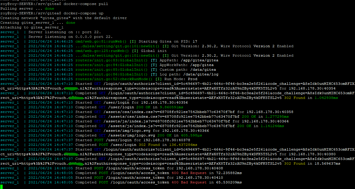 server_1 | 2021/06/24 14:48:05 Started POST /login/oauth/access_token for 192.168.178.30:40410