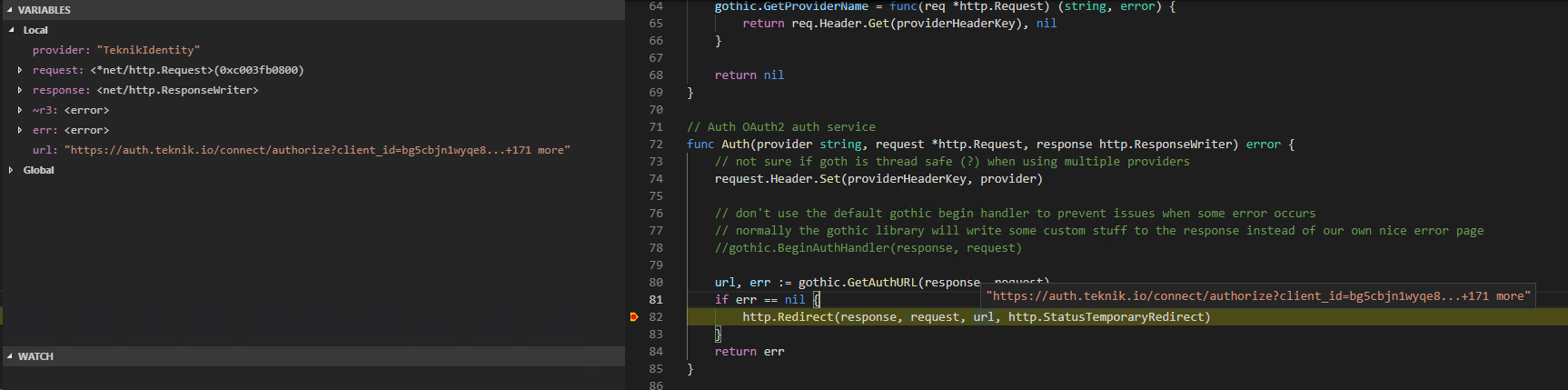 URL after clicking login: https://git.teknik.io/connect/authorize?client_id=&redirect_uri=https%3A%2F%2Fgit.teknik.io%2Fuser%2Foauth2%2FTeknikIdentity%2Fcallback&response_type=code&scope=openid&state=<state_guid>