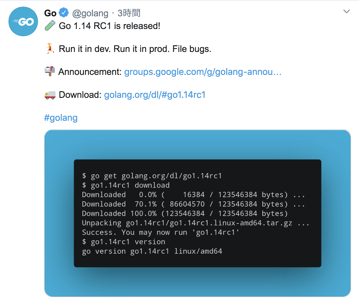 https://groups.google.com/forum/#!topic/golang-announce/mB1Mp9RlQw8 https://golang.org/dl/#go1.14rc1