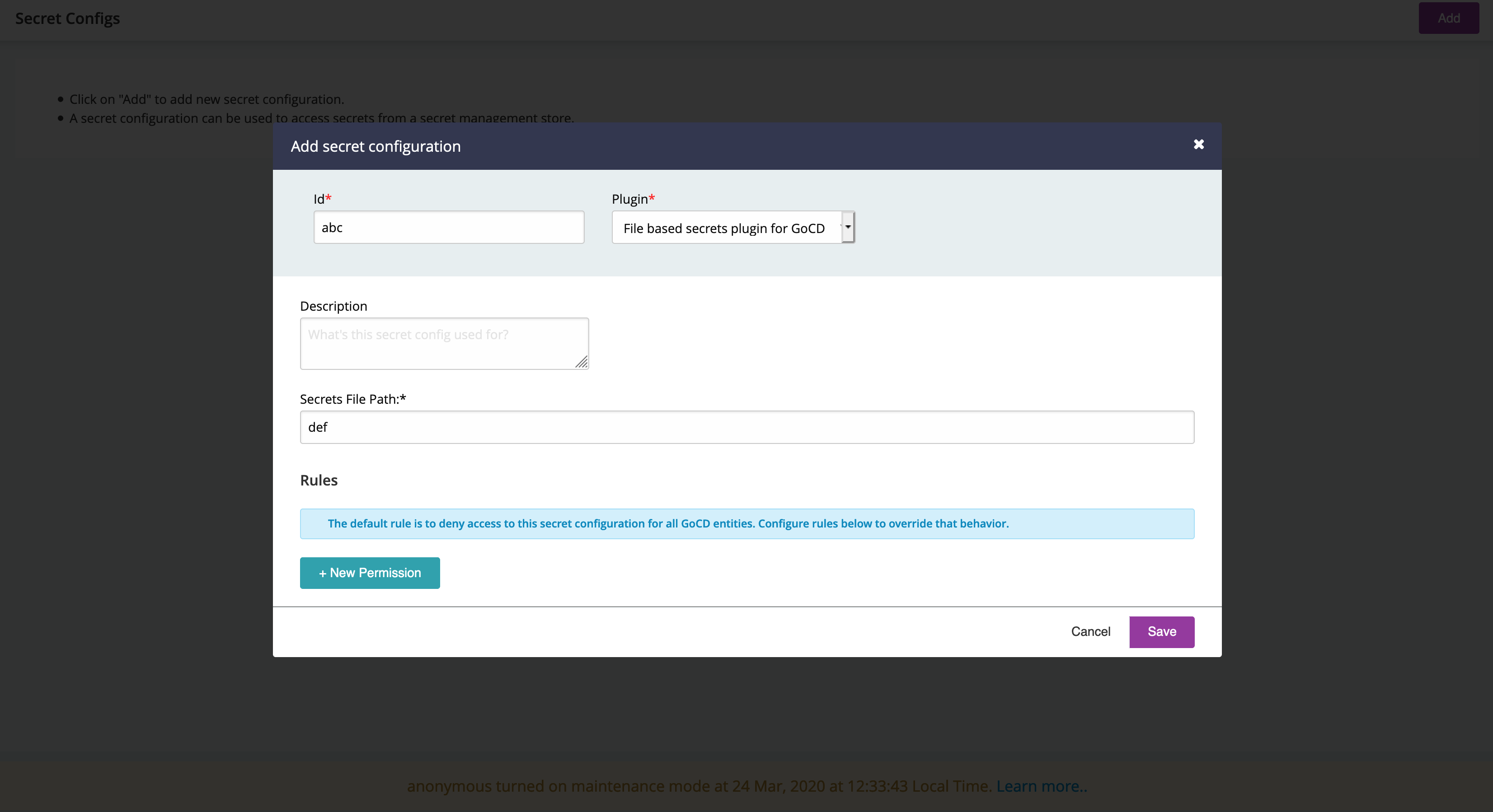 - Try to save a secret config or authorization config.